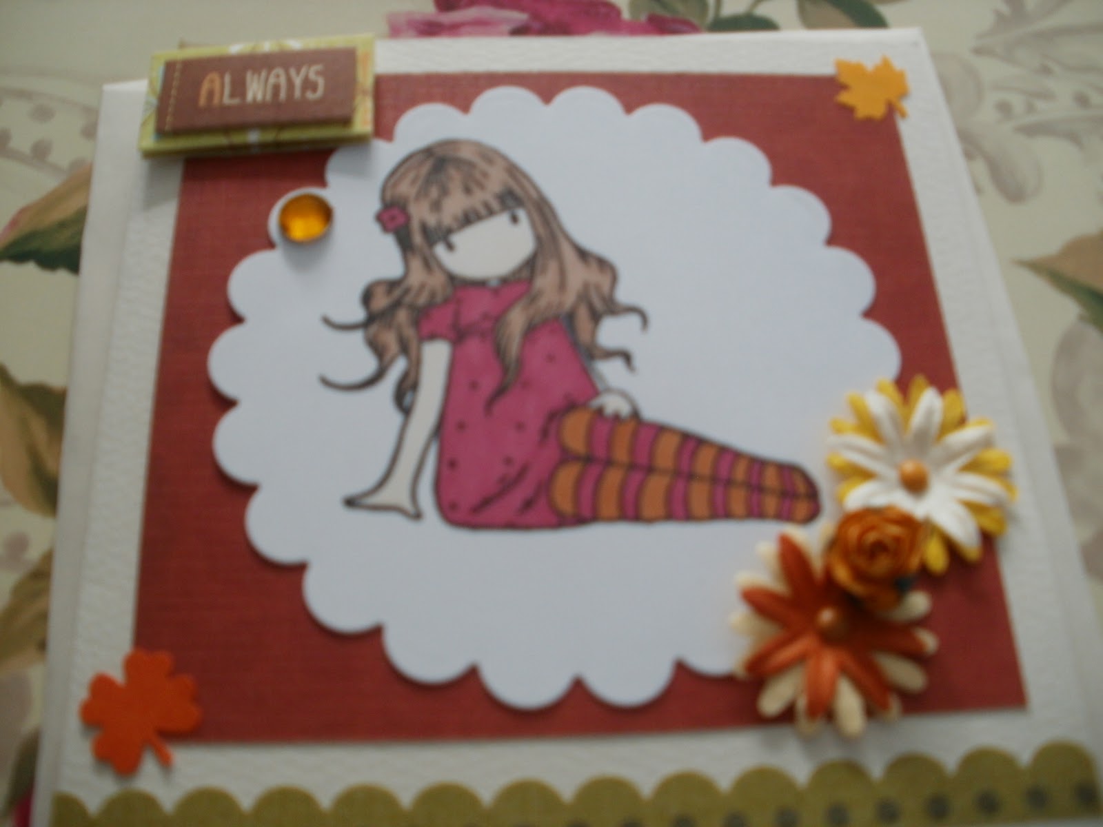 Ive had this idea in my mind for ages! I wanted to create some autumnal cards to celebrate the start of beautiful autumn. I used the Hampstead papers and ribbon, punched autumn leaves and assorted flowers. I also inked the edges of some of the scalloped circles using water, a paintbrush and a Tea stain Tim Holtz ink pad.