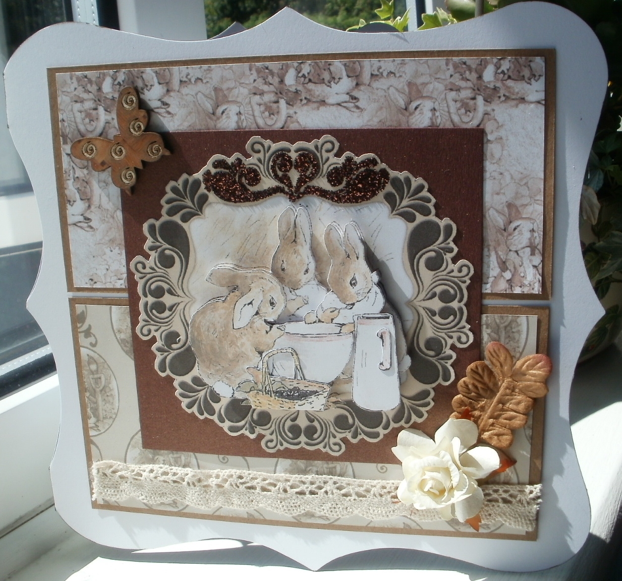 A beautiful card. I love the Peter Rabbit image and the lovely sepia papers you have used.