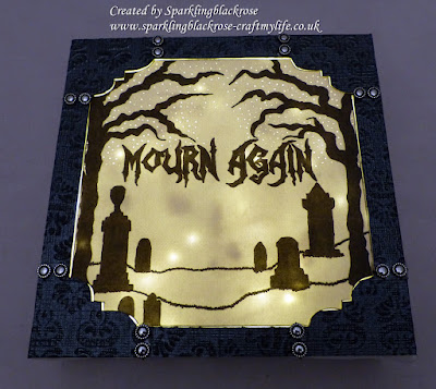 I wanted to create something special for Derek from Alkaline trio so I decided to make him a back lit canvas themed around his solo work. I sewed LED lights into the back of the canvas, then made a design and pierced the card stock to make 'stars' around the trees to really show the light behind. Then I made a 'frame' with embossed metallic card stock which I sanded and added embellishments to. A little while later Derek featured it on his instagram which was a huge honour.